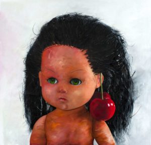 Incontournables, les peintures de Cat Sirot mettent en scène les poupées meurtries de son enfance.
