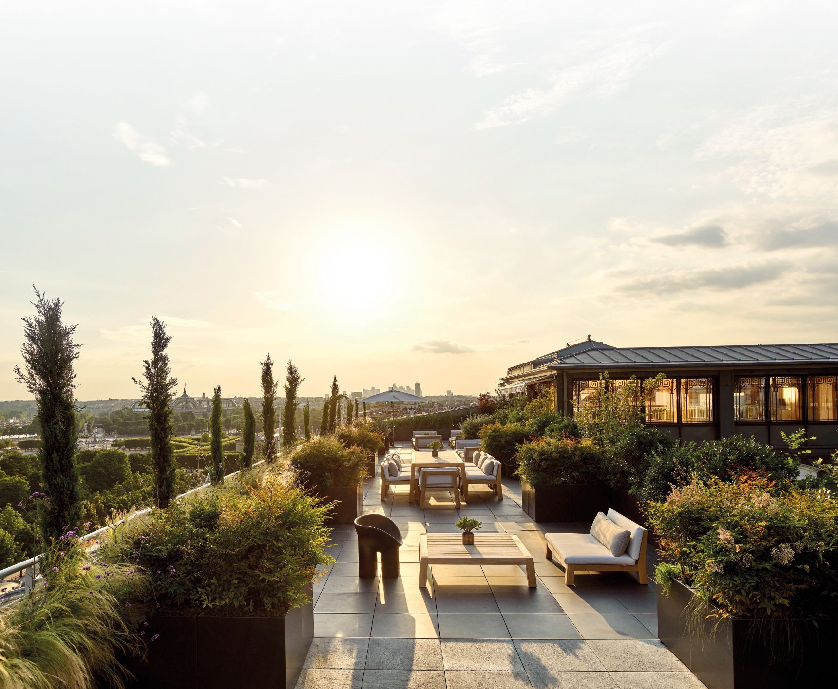 « Chef-d’œuvre d’élégance, de savoir-faire, d’innovation… », Isabelle Maurin, la directrice de communication des lieux, nous emmène au 7e ciel avec enthousiasme. Et à juste titre ! Cet appartement unique est non seulement fièrement installé au septième étage avec une terrasse époustouflante mais, et surtout, il fait vivre une expérience parisienne comme nulle part ailleurs. Afin de mettre en valeur l’incroyable terrasse qui offre une vue à 360° sur tout Paris, l’appartement et le jardin réunis peuvent s’étendre sur 620 m2 grâce aux trois chambres communicantes. Assurément, cette suite de rêve est l’une des plus spacieuses de la capitale.