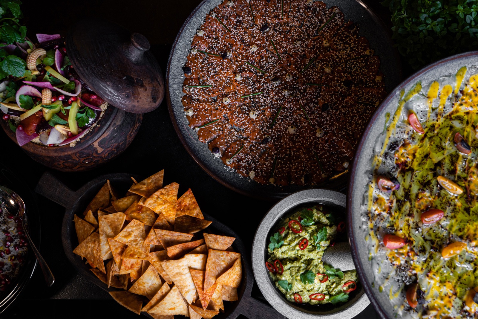Le Chef Adam Bentalha imagine un brunch festif, chaleureux et galvanisant. Sa cuisine ? Ethnique. De « tribu ». Joyeuse et surprenante. Entre cuisson au kanoun d’Afrique du Nord, inspirations d’Amérique du Sud et passage par l’Asie, sa gastronomie nomade décline une carte métissée. À table, ce sont les rituels, les gestes et la mise en scène qui viennent créer le lien et cette simplicité conviviale non feinte. Mêmes échappées lointaines pour les desserts de Yann Brys. Le chef pâtissier (meilleur ouvrier de France), qui infuse à ses créations les saveurs de continents baignés de lumière et d’exotisme. Tel le carpaccio d’ananas infusé à l’huile d’olive et vanille.